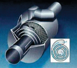 Absorptionsschalldämpfer dämpfen die Schallausbreitung, indem Schallenergie durch eine Schicht aus Glasfaser oder Stahlwolle in Wärmeenergie umgewandelt wird. Sämtliche Abgase des Kraftfahrzeugs und damit auch der Schall durchlaufen den Schalldämpfer und treffen hier auf die schallschluckende Stahlwolle [5] (Bild 8). Speziell für diesen Verwendungszweck wurde bei der Deutsche Edelstahlwerke GmbH der Werkstoff 1.4113 (X6CrMo17-1) entwickelt. Es handelt sich um einen ferritischen Chromstahl mit Zusätzen von Schwefel und Molybdän, der sich einerseits durch hohe Temperatur- und Korrosionsbeständigkeit, andererseits auch durch gute Zerspanbarkeit auszeichnet.